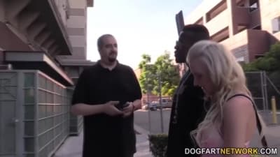 Die blonde Tochter hat einen großen schwarzen Schwanz zum Spielen. Er kann nicht widerstehen dabei zuzusehen, wie sie die fleischige Stange lutscht.