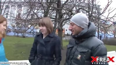 Ein Typ steht in der Mitte des Parks, als sie kommt und ihn fragt, ob er einen erstaunlichen blonden Teenager ficken will.