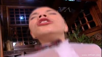 Dieses Mädchen ist in einem sehr sexy Outfit gekleidet, das ihr gut steht. Was ihr gut steht, ist auch ein großer Schwanz in ihrem Mund.