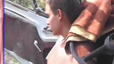 Hudson Grant und Tobias Haim werden von einem Zuseher erwischt, als sie im Freien, hinten auf einem Truck sich gegenseitig die Schwänze saugen.