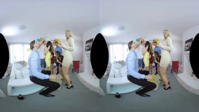 Gehen Sie nah ran und beobachten Sie die blonde Bombe Vanessa mit VR-Technologie. Sie werden sehen, wie sie ihm einen bläst, als wären Sie im Raum.