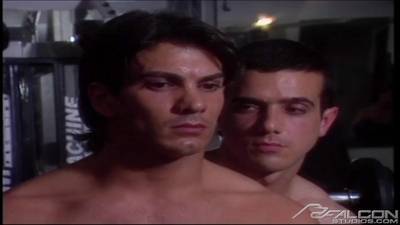 Schwule Vintage-Szene im Fitnessstudio Hotties