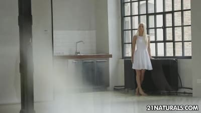Eine heiße Blondine mit kleinen natürlichen Brüsten fickt so gut mit ihrer Freundin auf dem Bett. Sie hat eine heiße rasierte Muschi und guten Sex .