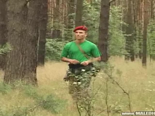 Dieser Soldat will nur etwas Zeit allein haben, um seinen Schwanz zu genießen und etwas Lustsaft abzuspritzen, also masturbiert er bis zum Ende.