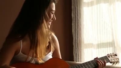Eva Lovia liebt es, ihre Gitarre und ihrer Muschi zu streicheln. Sehen Sie, wie sie beides in dieser Szene macht!