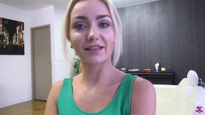 Hier genießen wir es, einer schönen Blondine zuzusehen, wie sie für diesen Harten, der ihre Muschi ausfüllt, ihre Beine weit spreizt.
