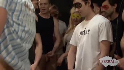 Diese süße Blondine ist mitten in einem Gangbang, da sie so viele Schwänze wie möglich ausprobieren will. Das wird sie auch tun!